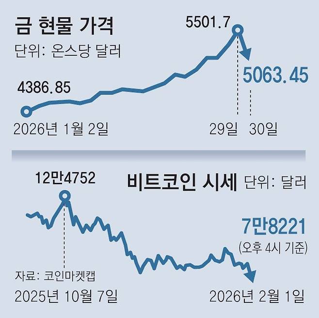 시장은 일단 매파 연준 의장으로 받아들였다. 달러 약세에 힘입어 고공행진하던 귀금속 가격이 급락했다. 30일(현지 시간) 하루에만 금과 은의 시가총액 4조7520억 달러(약 7000조 원)가 증발했다.