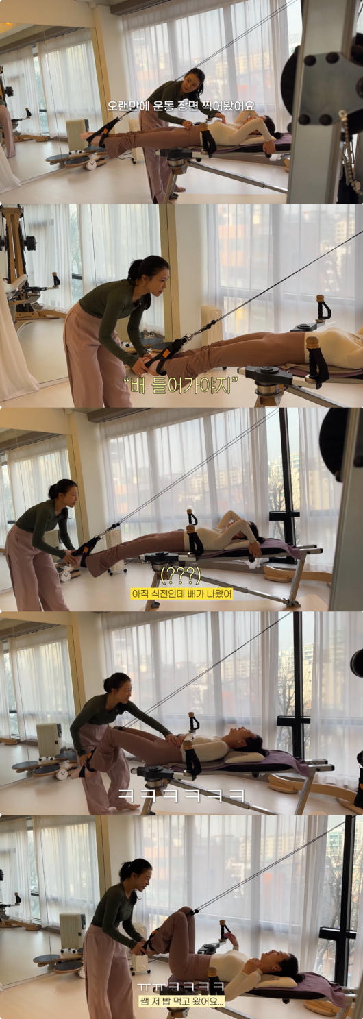 "배 나왔어, 배 들어가야지”...윤승아, 필라테스 강사 뱃살 지적에 '민망' ('승아로운') [순간포착]