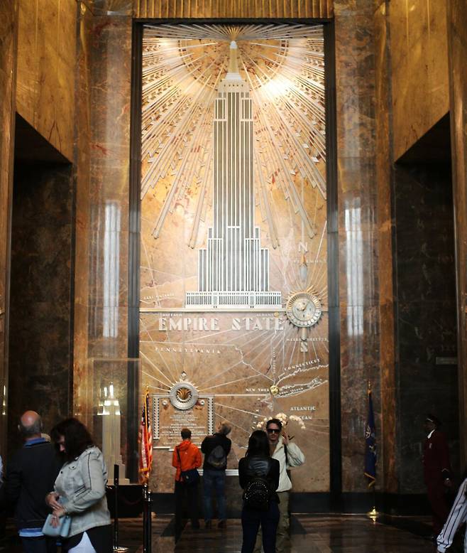 내부엔 금으로 장식된 천장이 복원되어 아르데코 건축의 아름다움을 느낄 수 있다. 86층으로 올라가면 360도 펼쳐지는 빌딩 숲 사이로 크라이슬러 빌딩이 눈에 들어온다. 밤이면 격자형 거리 위로 불빛이 촘촘히 박힌, 우리가 딱 기대했던 뉴욕이 눈 앞에 가득 펼쳐진다.