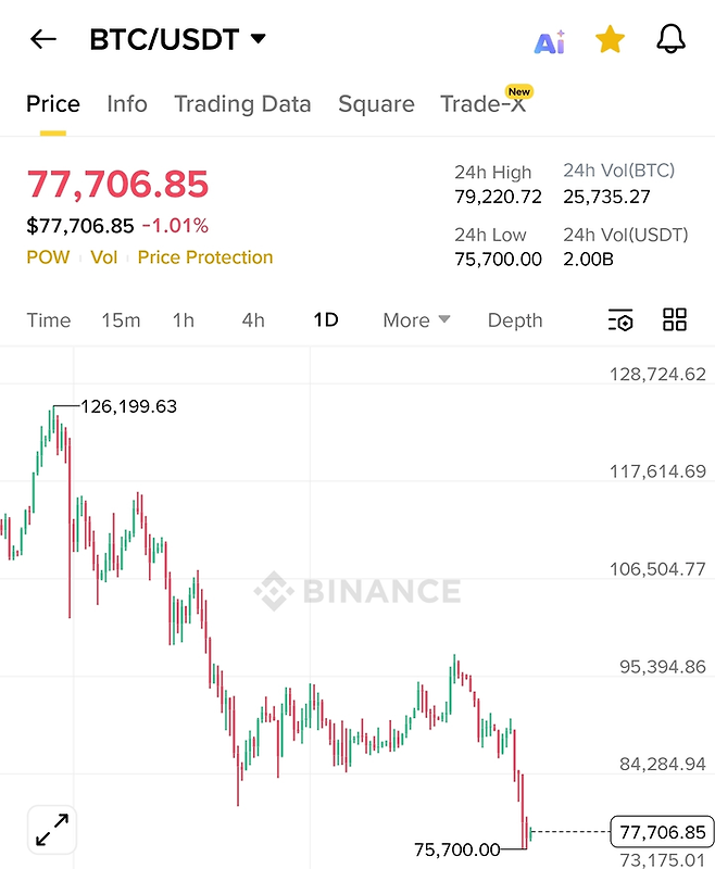 비트코인은 지난해 지난 1일 7만5000달러선까지 하락하며 298일만에 7만6000달러선이 붕괴됐다.