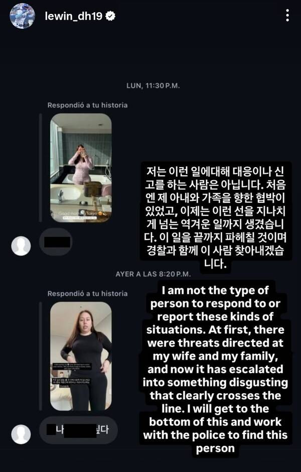 분노한 디아즈는 "처음엔 제 아내와 가족을 향한 협박이 있었고, 이제는 이런 선을 지나치게 넘는 역겨운 일까지 생겼다"라며 "이 일을 끝까지 파헤칠 것이며 경찰과 함께 이 사람 찾아내겠습니다"라고 '강경 대응'을 시사했다.