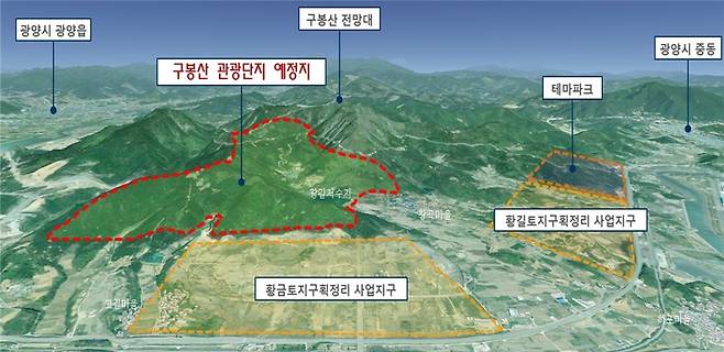 구봉산 관광단지는 광양시 황금·황길동 일원(약 63만평)에 사업비 3700억 원을 투자해 ▲대중형 퍼블릭 골프장 27홀 ▲숙박시설(콘도미니엄) 220실 ▲휴양문화시설 13종 등 대규모 관광 휴양시설을 조성하는 사업이다.
