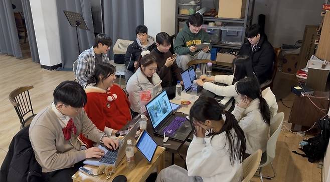 | ▲ 대학생 연합 창작 뮤지컬 동아리 ‘루케테’ 부원들이 뮤지컬 ‘나의 무인도에게’ 준비에 한창인 모습 |