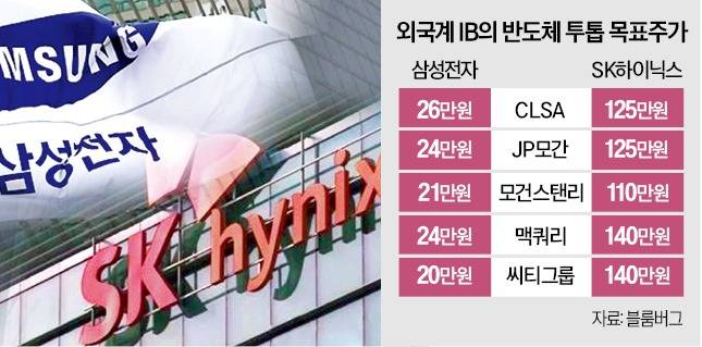 홍콩계 IB인 CLSA도 삼성전자 26만원, SK하이닉스 125만원으로 목표주가를 올렸다.