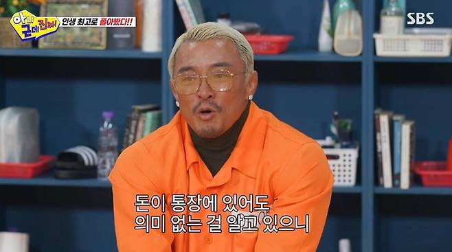 추성훈은 "통장에 돈이 있어봤자 의미 없는 걸 알고 있다. 인생 한 번인데 재미있게 놀아야지"라고 소신을 밝혔다. 이수지가 "그럼 노후대책은 어떻게 하냐"고 묻자 추성훈은 "그땐 또 뭔가를 하겠지? 지금 생각해 봤자 10년 뒤에 뭐 할지 모르지 않냐"고 말했다.