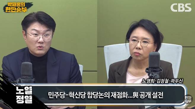 ◆ 김정철> 저는 합당이 지금도 무조건 될 거라고 생각을 하고요. 조국혁신당은 이번에 만약에 합당을 못 하게 되면 정말 큰 위기에 정말 봉착을 하게 되거든요.