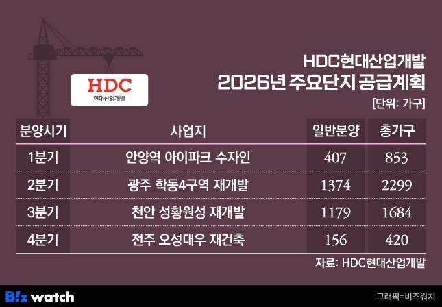 한편 HDC현대산업개발은 지난해 총 1만836가구를 분양한 바 있다. 올해는 공급 물량을 3000가구가량 늘려 안정적인 공급실적을 이어가는 한편 수익성 중심 대규모 개발사업과 신규 투자 모델 발굴에 주력한다는 계획이다.