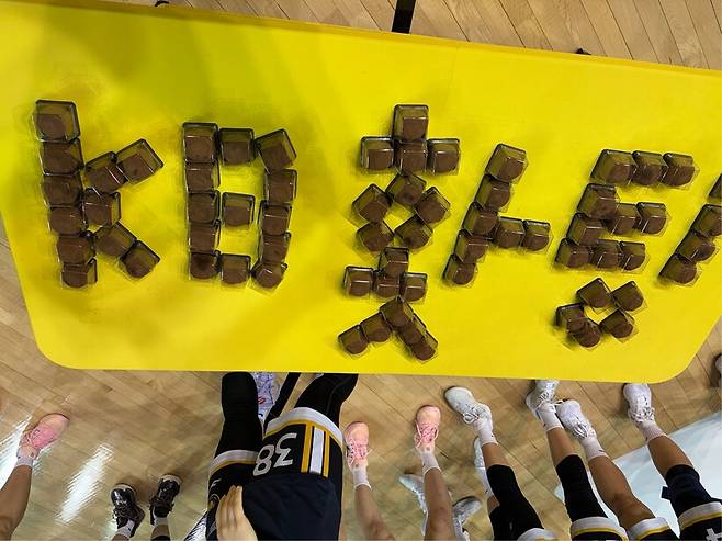 KB스타즈 사무국이 부지런히 경기를 소화한 선수들을 위해 두쫀쿠를 전 선수단에 선물했다.