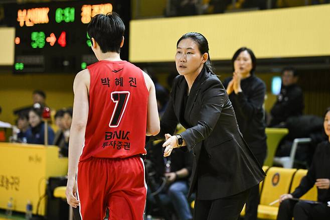 코트 안의 코치 박혜진의 존재감은 너무나 컸다.