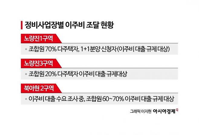 3일 정비업계 따르면 노량진1구역과 3구역은 관리처분계획 인가를 앞두고 이주비 대출 조달에 난항을 겪고 있다. 노량진1구역 조합에 따르면 조합원 961명 중 70%가 1+1 분양 신청자거나 다주택자로 분류돼 기본 이주비 대출 제한 대상이다.