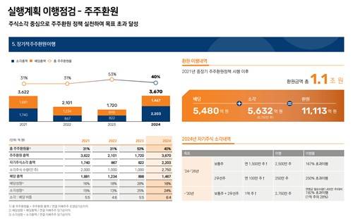 지난해 6월 기준 기업가치 제고 계획 이행 현황을 보면 보통주는 2천500만주가 소각됐지만, 2우선주는 250만주에 그쳤다. 발행 주식 수 대비 소각 비중을 감안하면 우선주 역시 일정 수준의 소각이 이뤄졌음에도 보통주와 비교해 특별한 메리트를 만들어내기에는 부족했다.