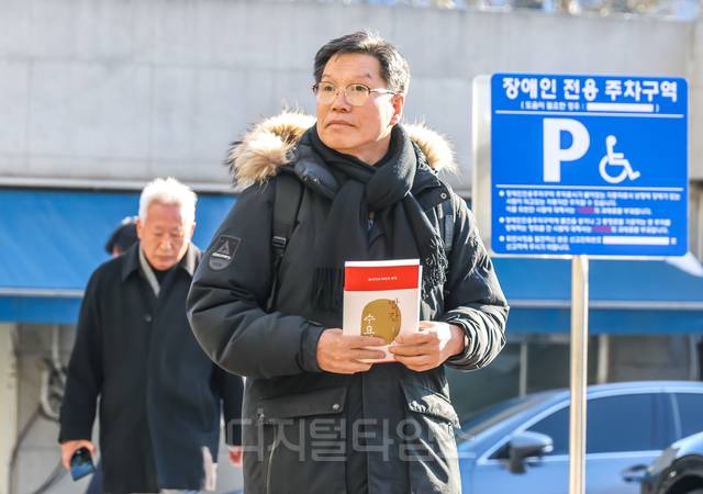 평화의 소녀상 철거를 요구하며 위안부 피해자를 모욕한 혐의를 받는 김병헌 위안부법폐지국민행동 대표가 피의자 신분으로 조사를 받기 위해 3일 서울 서초경찰서로 출석하고 있다. 이날 김 대표 출석에는 류석춘(왼쪽) 전 연세대 교수도 동행했다.