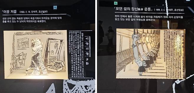 | ▲ 신문기사 한 쪽면에서 풍자와 해학을 담당했던 만화들의 모습 |