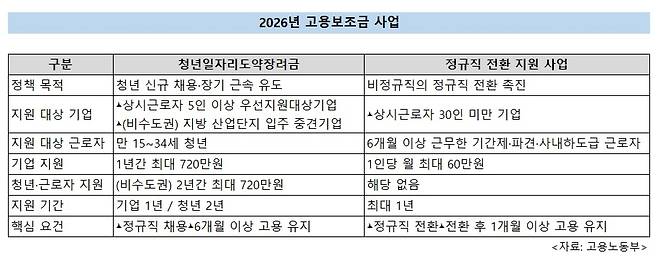 2026년부터 고용노동부의 청년일자리도약장려금 제도가 개편됨에 따라 비정규직의 정규직 전환을 지원하는 사업이 2년 만에 재개됐다. 고용노동부는 지난달 16일부터 기업 신청 접수를 시작했으며, 제도 개편에 따라 지원 대상과 요건, 지급 방식 등이 달라져 현장에서는 세부 내용을 둘러싼 궁금증도 커지고 있다.