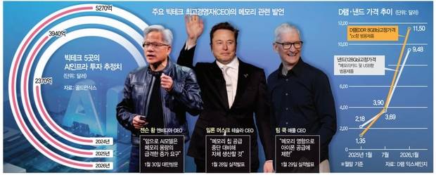 사업 모델이 제각각 다른 빅테크의 최고경영자(CEO)들은 한목소리로 최근 메모리 기근을 우려하고 있다.