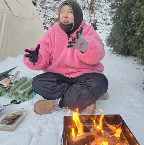 2일 풍자는 자신의 SNS와 유튜브 채널을 통해 혹한기 캠핑 콘텐츠 비하인드 사진을 공개했다. 공개된 사진 속 풍자는 영하의 설산에서 불멍을 하며 조개구이를 앞에 두고 앉아 있다. 하지만 조개는 단 두 개뿐이었다.