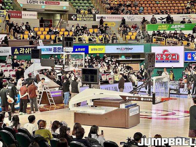 [점프볼=창원/이재범 기자] 경기 시작 13분 전에 백보드가 부서졌다. 빠르게 예비 골대로 교체해 경기는 7시 1분 시작되었다.