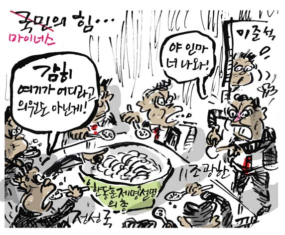[최경락 만평] 마이너스의 힘… 최경락 2026. 2. 3. 20:37 음성으로 듣기 음성재생 설정 이동 통신망에서 음성 재생 시 데이터 요금이 발생할 수 있습니다. 글자 수 10,000자 초과 시 일부만 음성으로 제공합니다. 남성 여성 느림 보통 빠름 음성 재생하기 닫기 음성 재생 중지 번역 설정 번역beta Translated by kaka i 한국어 - English 영어 日本語 일본어 简体中文 중국어 Nederlands 네델란드어 Deutsch 독일어 Русский 러시아어 Malaysia 말레이시아어 বাঙ্গোল ভাষা 벵골어 tiếng Việt 베트남어 Español 스페인어 اللغة العربية 아랍어 Italiano 이탈리아어 bahasa Indonesia 인도네시아어 ภาษาไทย 태국어 Türkçe 튀르키에어 Português 포르투갈어 Français 프랑스어 हिन्दी 힌디어 닫기 번역중 Now in translation 글씨크기 조절하기 글자크기 설정 파란원을 좌우로 움직이시면 글자크기가 변경 됩니다. 가 매우 작은 폰트 작은 폰트 보통 폰트 큰 폰트 매우 큰 폰트 가 이 글자크기로 변경됩니다. (예시) 가장 빠른 뉴스가 있고 다양한 정보, 쌍방향 소통이 숨쉬는 다음뉴스를 만나보세요. 다음뉴스는 국내외 주요이슈와 실시간 속보, 문화생활 및 다양한 분야의 뉴스를 입체적으로 전달하고 있습니다. 닫기 인쇄하기 Copyright © 저작권자 © 중부일보 - 무단전재 및 재배포 금지