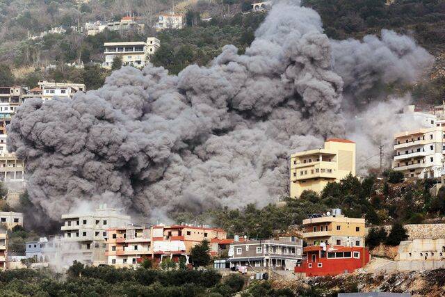 이스라엘군이 친이란 무장정파 헤즈볼라의 거점으로 지목해 2일(현지시간) 공습한 레바논 남부 아인카나의 주거지역에 연기가 피어오르고 있다. 이스라엘은 미국 등의 중재로 2024년 11월 헤즈볼라와 휴전했지만 이후에도 합의 위반을 주장하며 레바논 남부에서 산발적인 군사행동을 이어가고 있다.