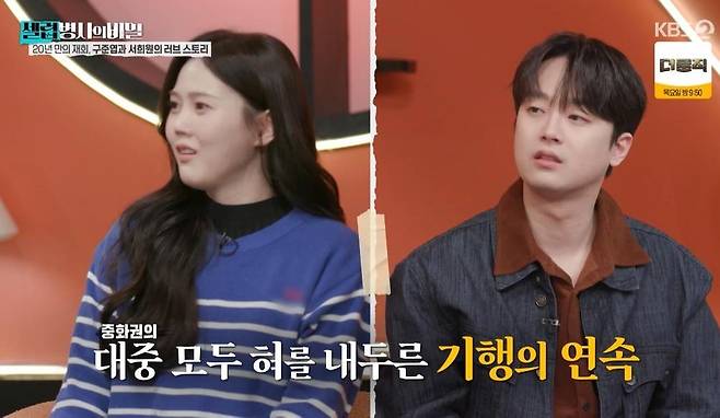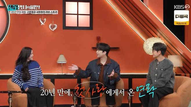 3일 방송된 KBS 2TV '셀럽병사의 비밀'에서는 현실에서는 좀처럼 일어나기 힘든 '첫사랑과의 재회'를 기적으로 완성해 낸 구준엽과 서희원 부부의 이야기를 집중 조명했다.