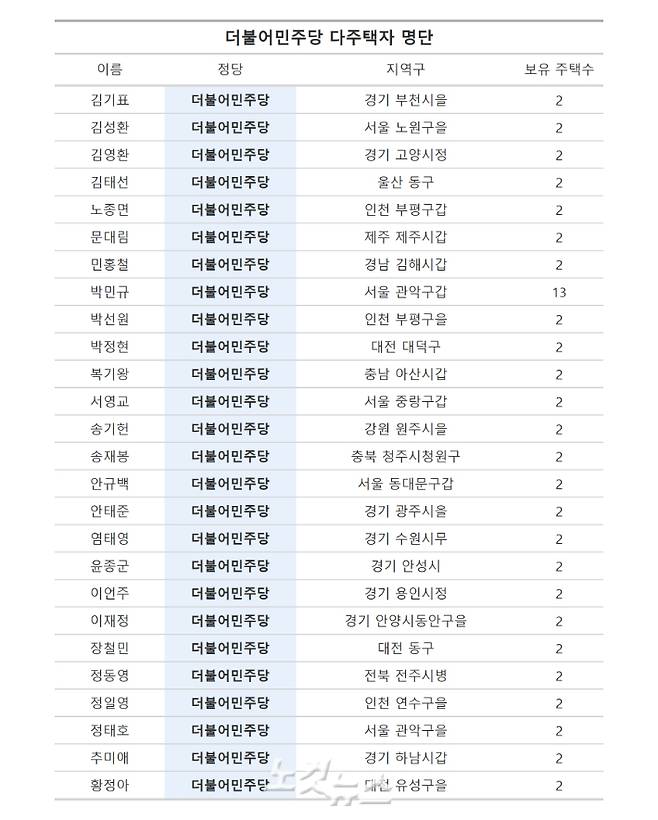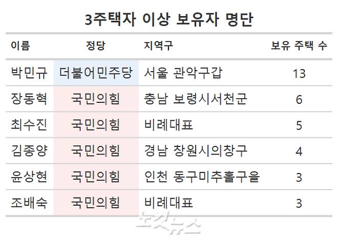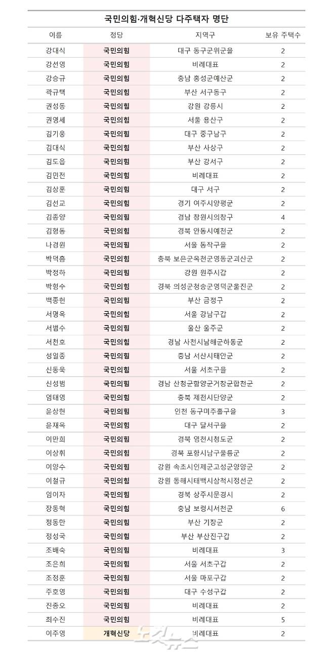 다주택자는 민주 26명, 국힘 42명, 개혁신당 1명