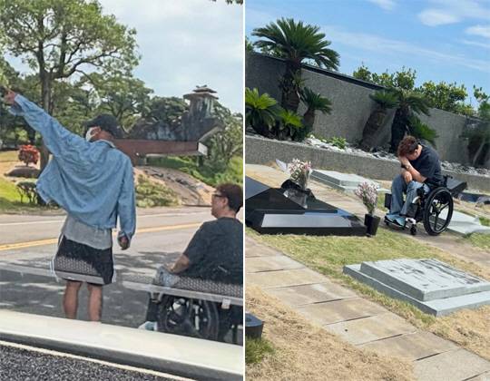 강원래 업고 故서희원 묘지 간 구준엽..."숨죽여 펑펑 울어"