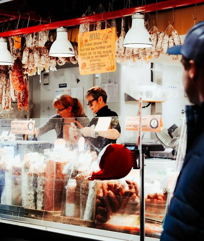 실내라 날씨에 구애받지 않고 구경할 수 있다는 게 크나큰 장점! 안으로 들어서면 약 50개 이상의 현지 농수산물·식재료·수공예품 판매점들이 오밀조밀 모여 있다. 신선한 과일, 채소, 해산물, 육류, 치즈, 간식들까지. 군침 꼴깍 넘어가게 만드는 재료들이 비엔나 소시지처럼 줄줄이 이어진다. 여느 시장이 그렇듯 사람 냄새가 짙고 상인과 손님 사이 오가는 문장들이 퍽 정답다. 그 풍경 하나만으로도 마음이 배불러지는, 흐뭇한 공간이다.