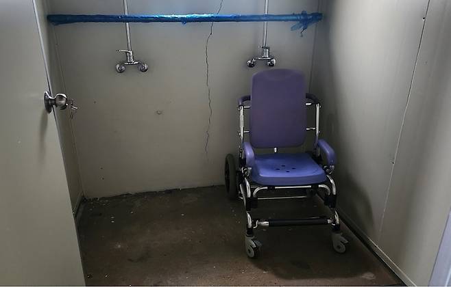 ▲ 이호서마을에 있는 마을 샤워장. 마을 해녀들과 스쿠버 다이빙 교육받는 이들을 위해 마을을 설득해 지었다. 고령화된 해녀들과 장애인들이 이용할 수 있도록 장애친화형으로 지어졌다. 목욕용 휠체어가 구비되어 있고, 휠체어 높이에 수전이 설치되어 있다. (제주해녀문화연구원 제공) |