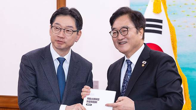 우원식 국회의장은 오늘 국회에서 김경수 지방시대위원장을 만나 6·3 지방선거 전 지방분권형 개헌이 이뤄지도록 최선을 다하겠다는 입장을 밝혔습니다.