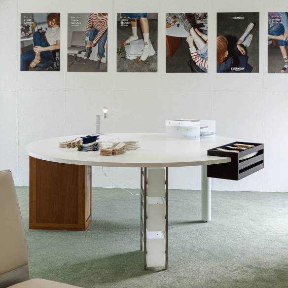 작업한 가구 중 지금까지 유효한 것은 아이헤이트먼데이 쇼룸을 위해 만든 원형 책상. 지름 2~3m의 원형 상판을 각기 다른 서랍장이 다리처럼 받치는 구조인데, 서로 다른 가구들이 모여 하나의 책상이 된다. 이 작업 이후로 필요에 따라 합치거나 분리해 쓰는 가구를 적극적으로 시도하기 시작했다.