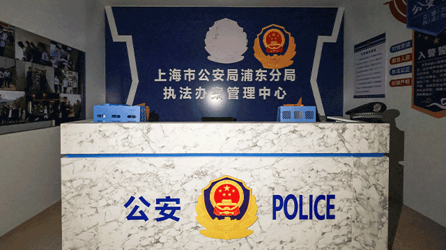 한 세트장은 중국 상하이 푸둥 지역 경찰서인 것처럼 간판을 달았습니다.