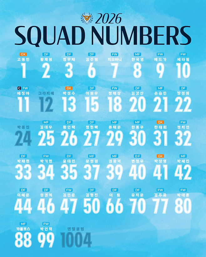 [골닷컴] 배웅기 기자 = 새로운 시즌 K리그1 승격에 도전하는 대구FC가 오는 2026시즌 선수단 배번을 공개했다.