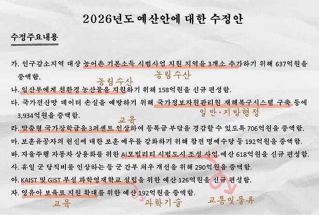 국회가 이렇게 판단한 근거, 국회 본회의에서 통과한 '2026 예산안에 대한 수정안'을 보면 힌트를 얻을 수 있습니다.