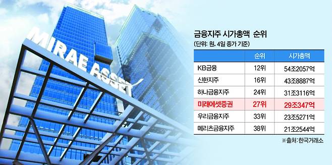 스페이스X 올라탄 미래에셋증권, 금융지주 시총 넘었다⋯한달 새 47위→27위