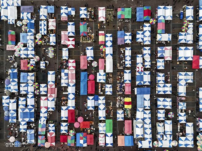 설 명절을 10여일 앞둔 4일 전국 최대 규모인 경기 성남시 모란민속5일장에 형형색색의 천막이 펼쳐져 있다.