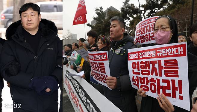 세종호텔 노조위원장 영장심사…법원 앞에선 “석방” 촉구[포토뉴스]