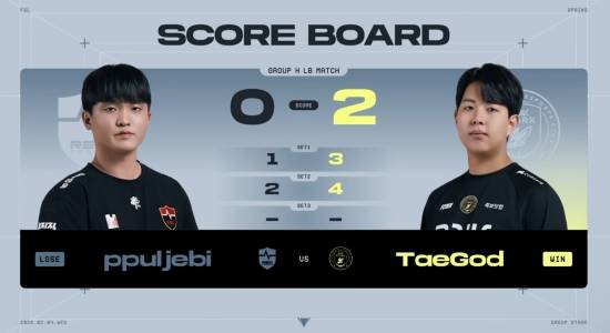 네 번째 경기는 농심 레드포스(NS) 'ppuljebi' 김경식 선수와 BNK 피어엑스(BFX) 'TaeGod' 김태신 선수의 그룹 H조 패자조 매치.