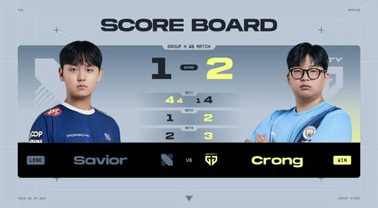 세 번째 경기는 DRX 'Savior' 이상민 선수와 젠시티(GCT) 'Crong' 황세종 선수의 그룹 H조 승자조 매치.