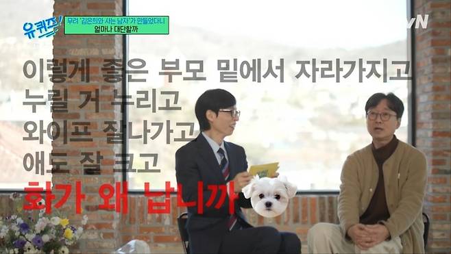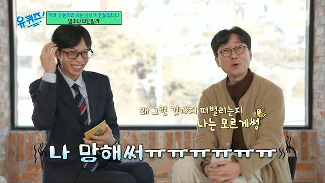 장항준 감독은 "나는 힘들 때도 지인들한테 전화해서 말하면서 울더라. 나는 왜 그런 것까지 떠벌리는지 모르겠다"고 말해 유재석을 폭소하게 했다.