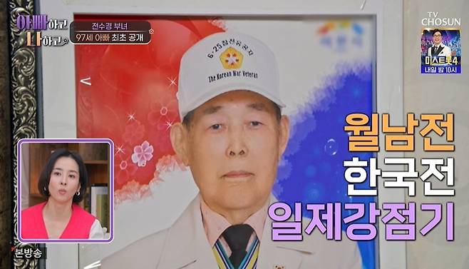 전수경은 "아버지는 일제 강점기에 중고등학교를 다니고, 광복도 겪고, 스무 살 때 한국전쟁에 참전하셨다. 포로로 잡혀서 북송되던 중 풀려나서 남한으로 돌아오셨다. 저 낳을 때 베트남전에 파병 가셨다"라고 설명했다.