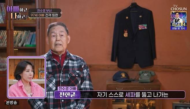 전수경은 가족들 반응에 관해 "쌍둥이가 할아버지를 TV에서 볼 수 있단 제의가 왔다니까 건강하게 사는 90대를 알려주고 싶다고 하더라"고 밝혔다. 전수경은 아버지 나이에 관해 "1930년도에 태어나셨다. 빠른 30년생이시다"라며 97세라고 말해 모두를 놀라게 했다.