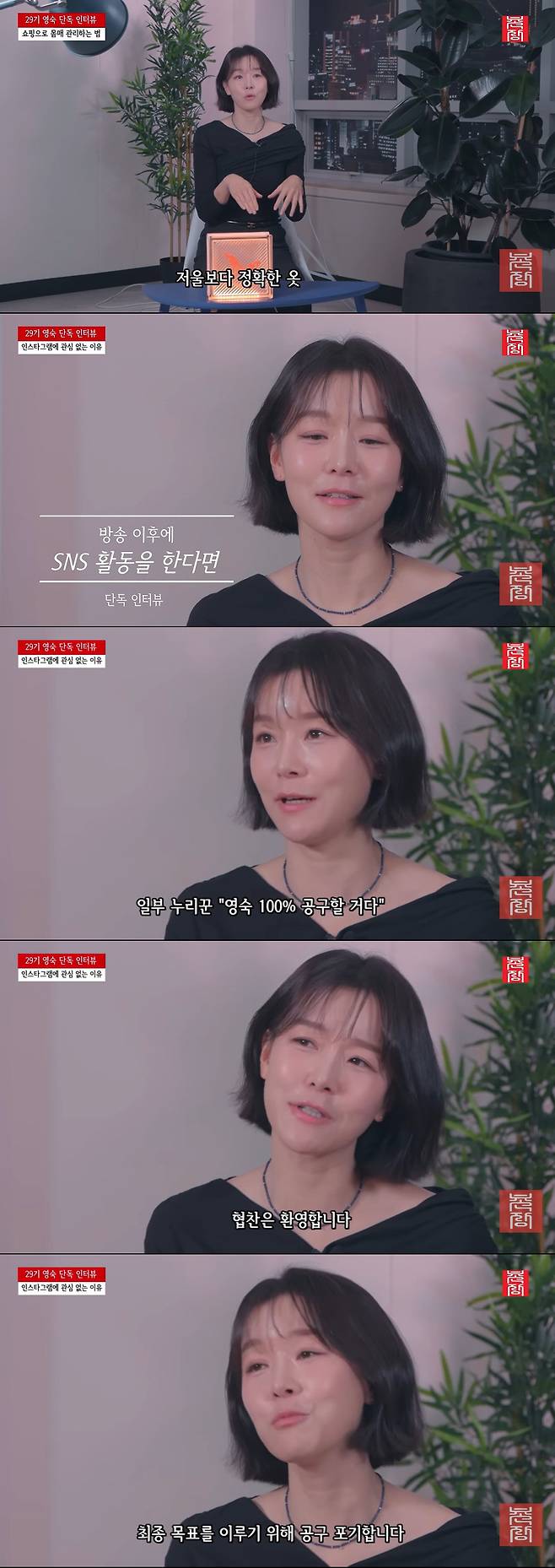 '나는 솔로' 29기 영숙이 SNS 활동에 대한 생각을 밝혔다.