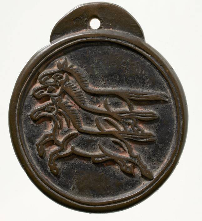 | ▲ 붉은 인주가 묻은 금속 마패 |