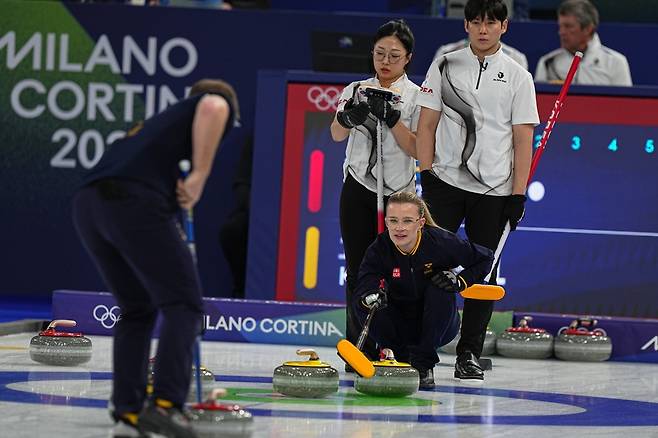 한국은 김선영(강릉시청)-정영석(강원도청)이 호흡을 맞춘 컬링 믹스더블부터 밀라노·코르티나담페초 동계 올림픽 여정을 시작했다. 김선영-정영석 조는 5일(한국시간) 이탈리아 코르티나담페초의 코르티나 컬링 올림픽 스타디움에서 열린 대회 믹스더블 라운드로빈 첫 경기에서 스웨덴의 이사벨라 브라노-라스무스 브라노에게 3-10으로 졌다.