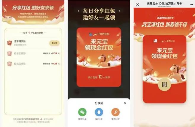 5일 중국 매체들에 따르면 최근 텐센트는 AI 챗봇 앱 위안바오 관련 춘절 홍바오 증정 캠페인을 시작했다. 이번 캠페인을 통해 위안바오는 최대 10억위안(약 2100억원)의 디지털 홍바오를 사용자들에게 배포한다. 개인별 홍바오는 최대 1만위안까지다.