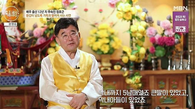 배우 출신 무속인 정호근이 가족사를 털어놓으며 눈물을 흘렸다.
