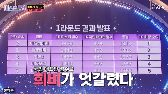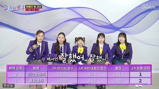 5일 방송된 TV조선 '미스트롯4'에서는 메들리 팀 미션이 펼쳐졌다.