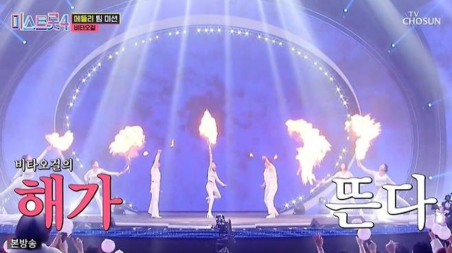 또한 염유리, 장혜리, 유수비는 장윤정의 '이따, 이따요', 원하연, 김산하, 남승민은 서울패밀리의 '이제는'으로 다른 매력을 선보였다. 특히 원하연, 김산하, 남승민은 절도 있는 움직임으로 눈길을 끌었다. 엔딩 포즈 또한 남달랐다. 이어 춘길이 등장, 불 쇼까지 이어지며 눈을 뗄 수 없는 무대가 이어졌다.