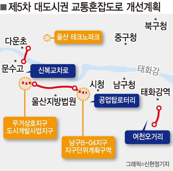 울산 도심의 대표적인 교통체증 구간인 문수로와 산업로 여천오거리, 다운~굴화 일대에 우회도로가 신설돼 상습 정체가 완화될 전망이다.
