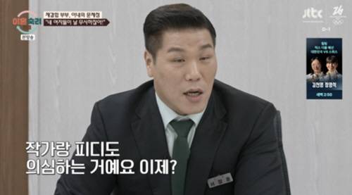 남편은 심지어 촬영을 위해 대화를 나눈 제작진과의 상황까지 아내가 의심했다고 털어놨다. 그는 "여자 작가들과 이야기하면 반드시 문제가 생긴다"며 "사전 미팅 후에도 크게 다퉜다"고 말했다. 이어 "'작가들이랑 시시덕거리니까 말이 잘 나오냐'는 식으로 물었다"고 주장했다.